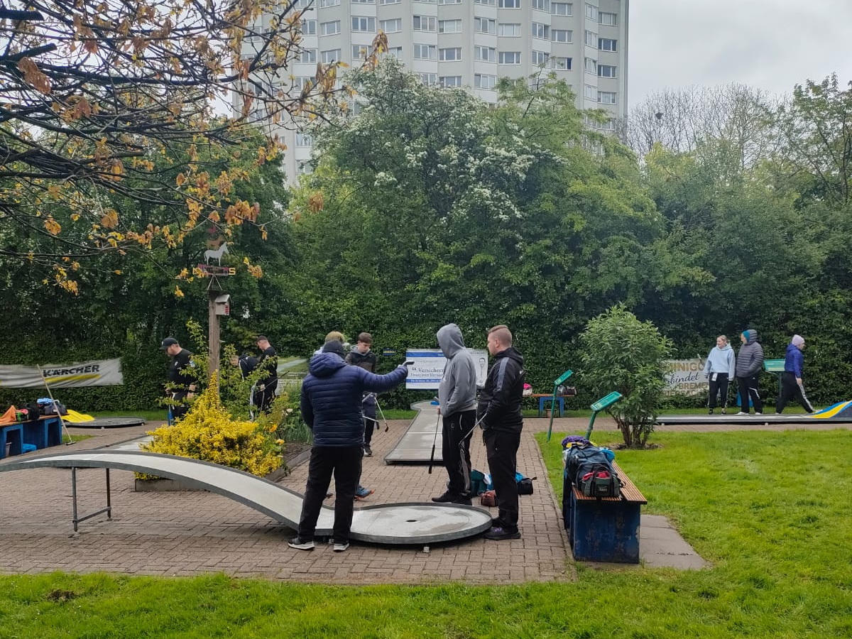 Bereits heute sind die Akteure angereist, um die 18 Bahnen zu trainieren. Auch am morgigen Samstag werden an jeder einzelnen Bahn verschiedene Bälle und Schlagvarianten geprobt, um am Spieltag jedes Hindernis mit einem Schlag zu bewältigen. Man darf sicher sein, dass dem Publikum die ein oder andere 18 geboten wird!
