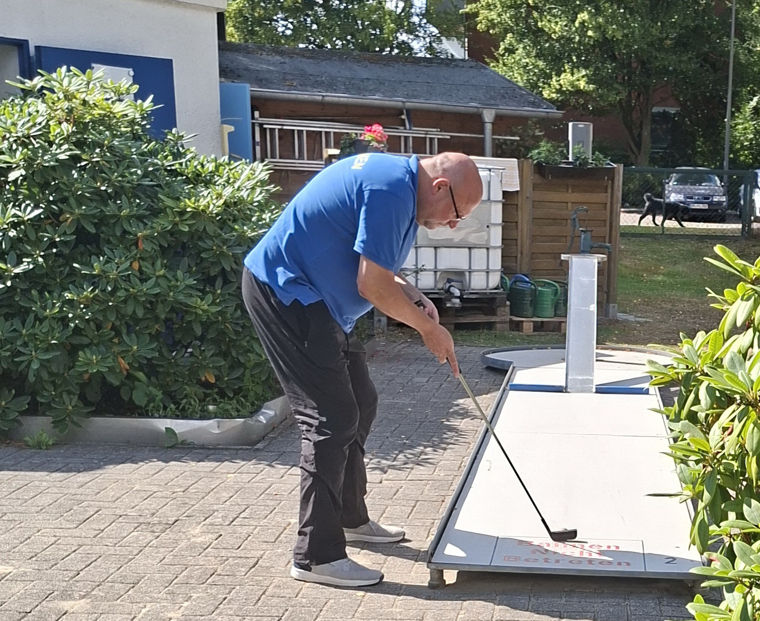 Zu Beginn der zwei letzten Durchgänge hatte sich Ralf dank einer 19 schon ein wenig abgesetzt. Hart verfolgt von Reiner, Uwe und Andreas. Thomas B. fand langsam Anschluss an seine alten Stärken. Auch die drei „Ms“ Markus, Michel und Matthias hatten durchaus noch ihre Chancen. Jürgen spielte erst seine zweite VM und lernte mit jedem Schlag dazu.