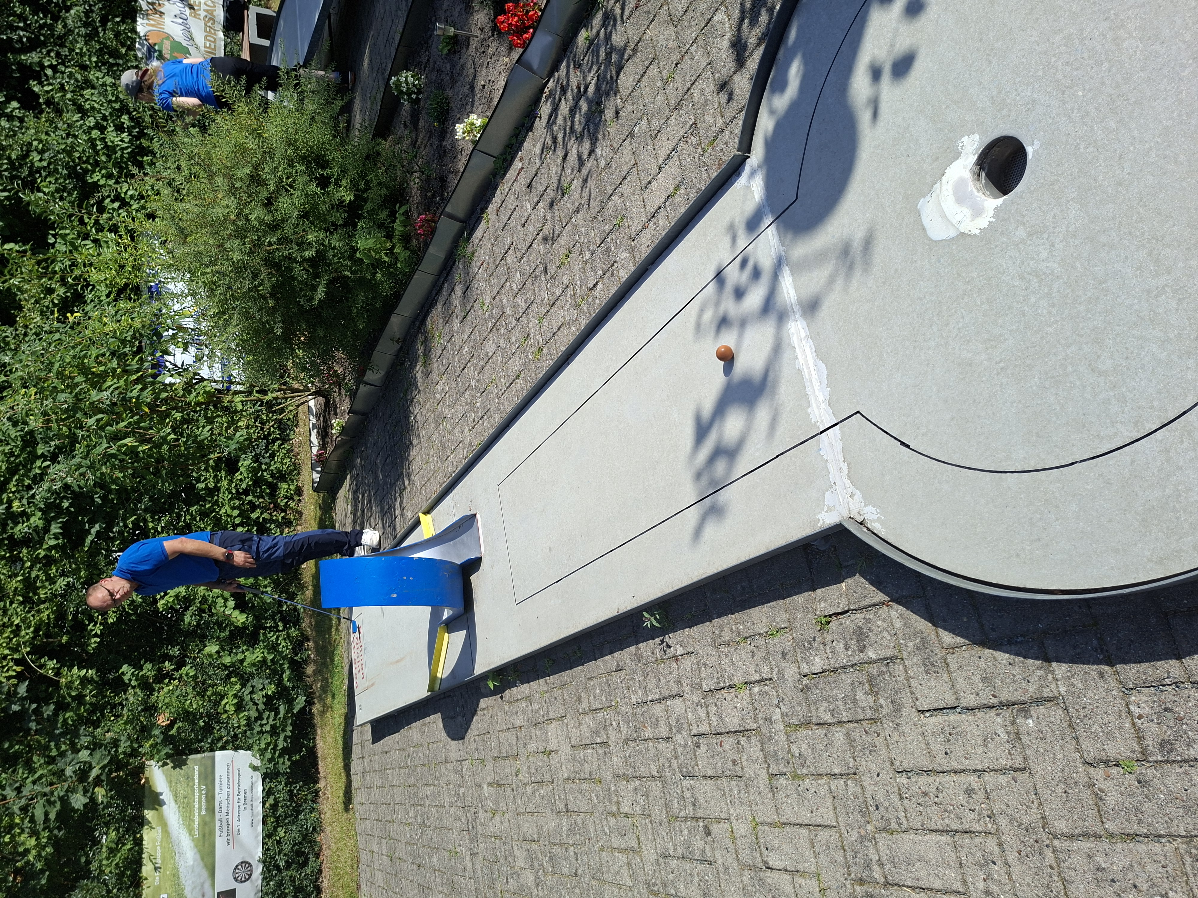 Viele grüne Ergebnisse wurden gespielt. Die Roten lagen wohl gleichauf und ab und an musste auch der schwarze Stift ran. Zweimal zückte Dietrich die blaue Farbe, denn Ralf gelang die 19! In der letzten Runde verhinderte eine Zwei an der letzten Bahn (Blitz) die fehlerfreie Runde.