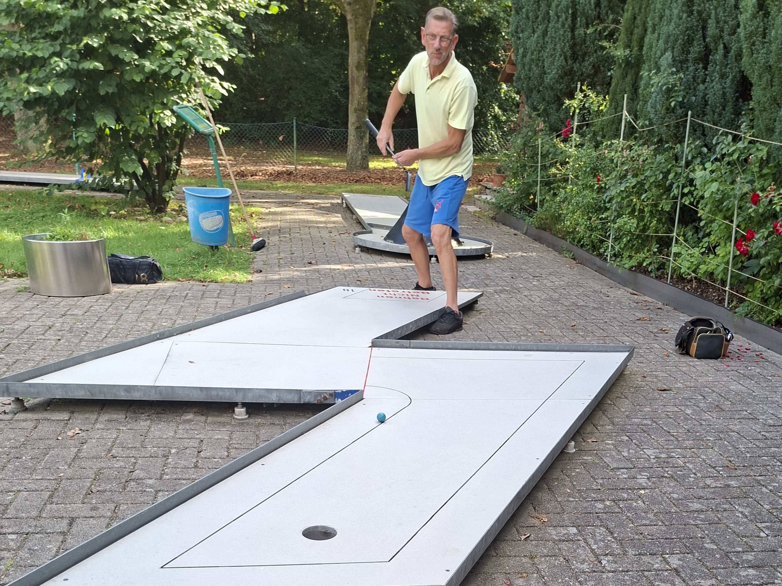 Natürlich wurde anschließend der Schläger geschwungen, um die letzte Sicherheit in den Schlägen zu erlangen. 15 Herren und eine Dame (sie brauchte jedenfalls kein Nervenflattern zu befürchten) hatten sich in diesem Jahr beim Sportwart angemeldet. Da trafen schon ein paar Hochkaräter aufeinander, die um den Titel ringen wollten.