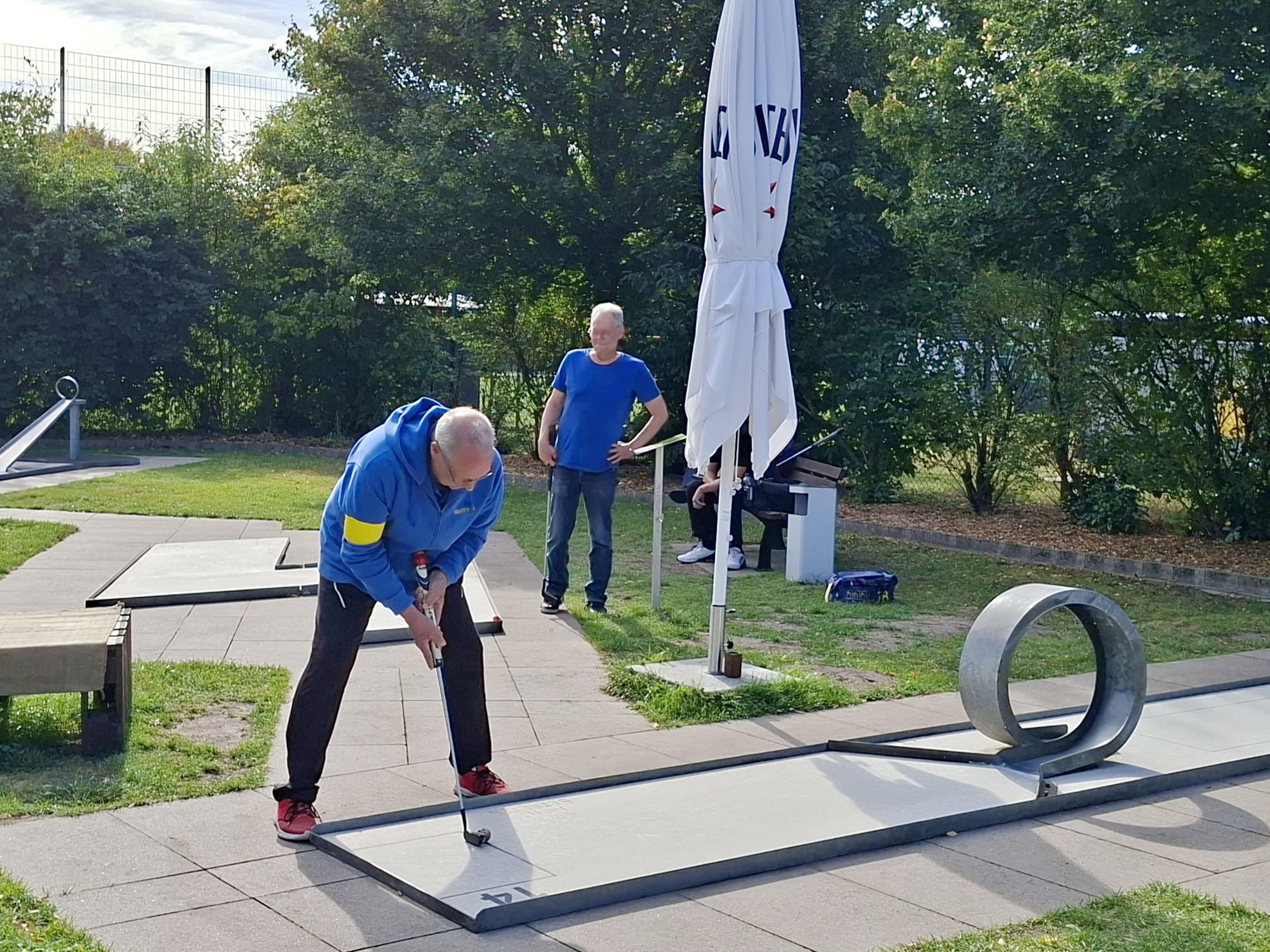 Am Sonntagmorgen gutes Wetter, aber noch etwas kühler. So mancher Ball kommt in die Hosentasche.