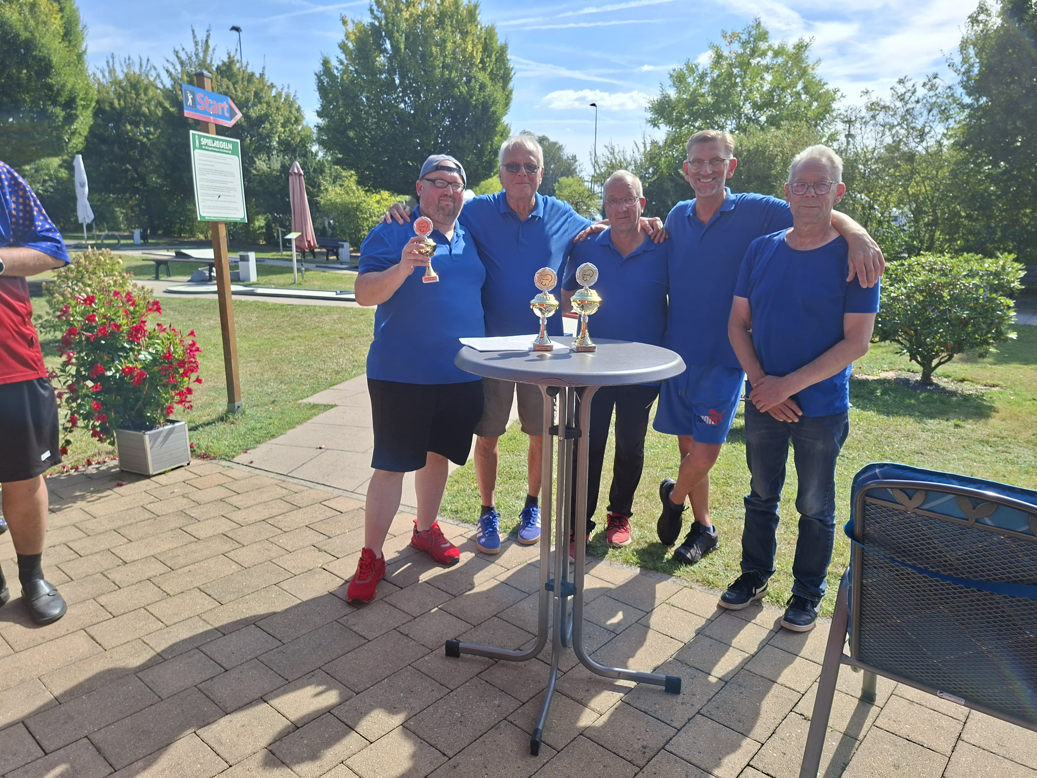 Nun auf zur entscheidenden Abschlussrunde. Zwar wird sie mit einer 98 die Schlechteste, aber insgesamt 378 Schläge bedeuten heute den zweiten Rang hinter Celle 2, und somit recht überraschend auch den Pokal für den dritten Tabellenplatz.