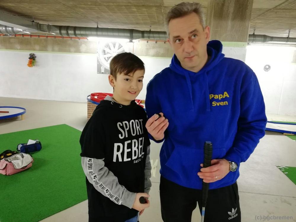 Aller Anfang ist schwer! Lina war in Runde Eins gut gestartet, dann der Einbruch mit 4 Ottos, die Tränen flossen. Doch „Papa“ Steffen hat Lina schnell beruhigen können und sie fand wieder ins Spiel. Das hat sie ganz toll gemacht! Ebenso wie Lina lieferte auch Joost eine konstante Leistung ab. Leonie, die in Runde Eins viele Probleme hatte, fand in der zweiten Runde besser ins Spiel und hatte 32 Schläge weniger, als in Durchgang Eins notiert wurden.